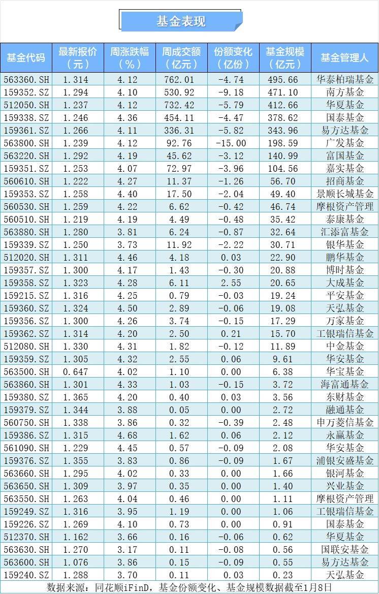 本周40只中证A500基金全线飞腾,其中华安基金的增强ETF领涨,涨幅达4.68%;国联安基金的涨幅最小,为3.17%。