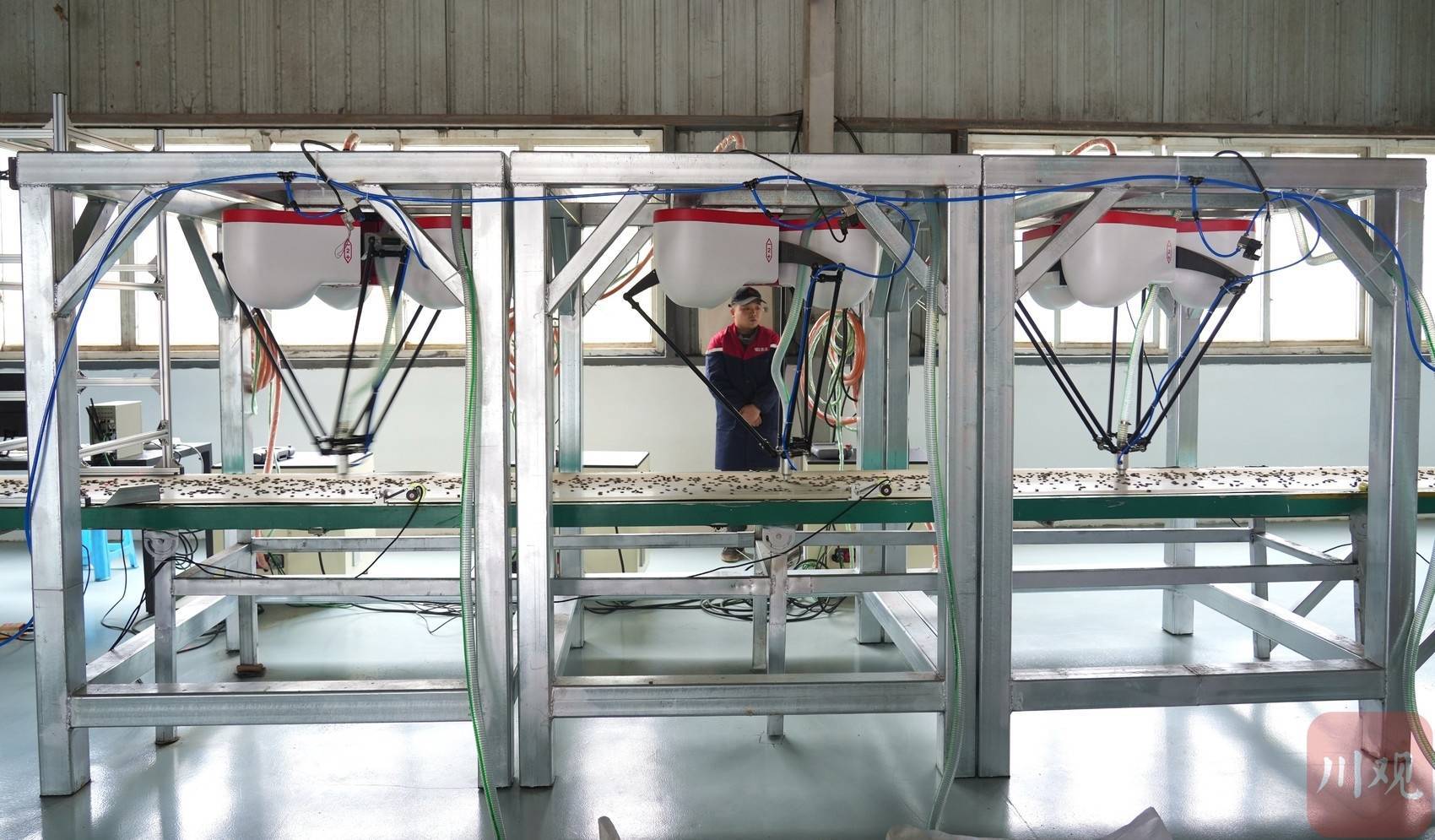 r另一头的制品车间里,烘干后的1×1厘米杜仲丁先后通过智能色选机与厚度检测系统,相宜国度集采条目的优质制品即可被精确分辨,仅需一东说念主追究盘曲料。