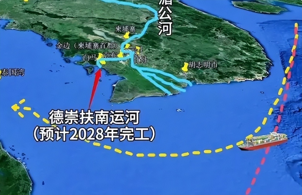 这条运河通达明,就把湄公河水系和太平洋连气儿起来了,等于是柬埔寨王人门经济圈取得了出海口。