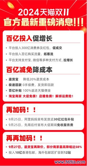 4、面向淘宝商家,天猫双11将全面杀青大促免佣、店播免佣,还将为淘宝商家解绑运脚险。