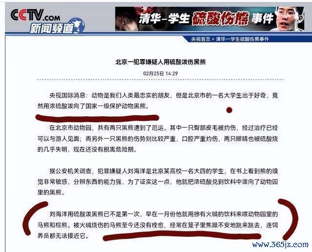 2002 年 2 月 25 号,《京华时报》登了一篇叫《清华大学一学生跟禽兽过不去,用硫酸把五头狗熊烧伤》的报说念。这报说念一出来,刘海洋伤熊的事就被推到公论的旋涡里头去了。